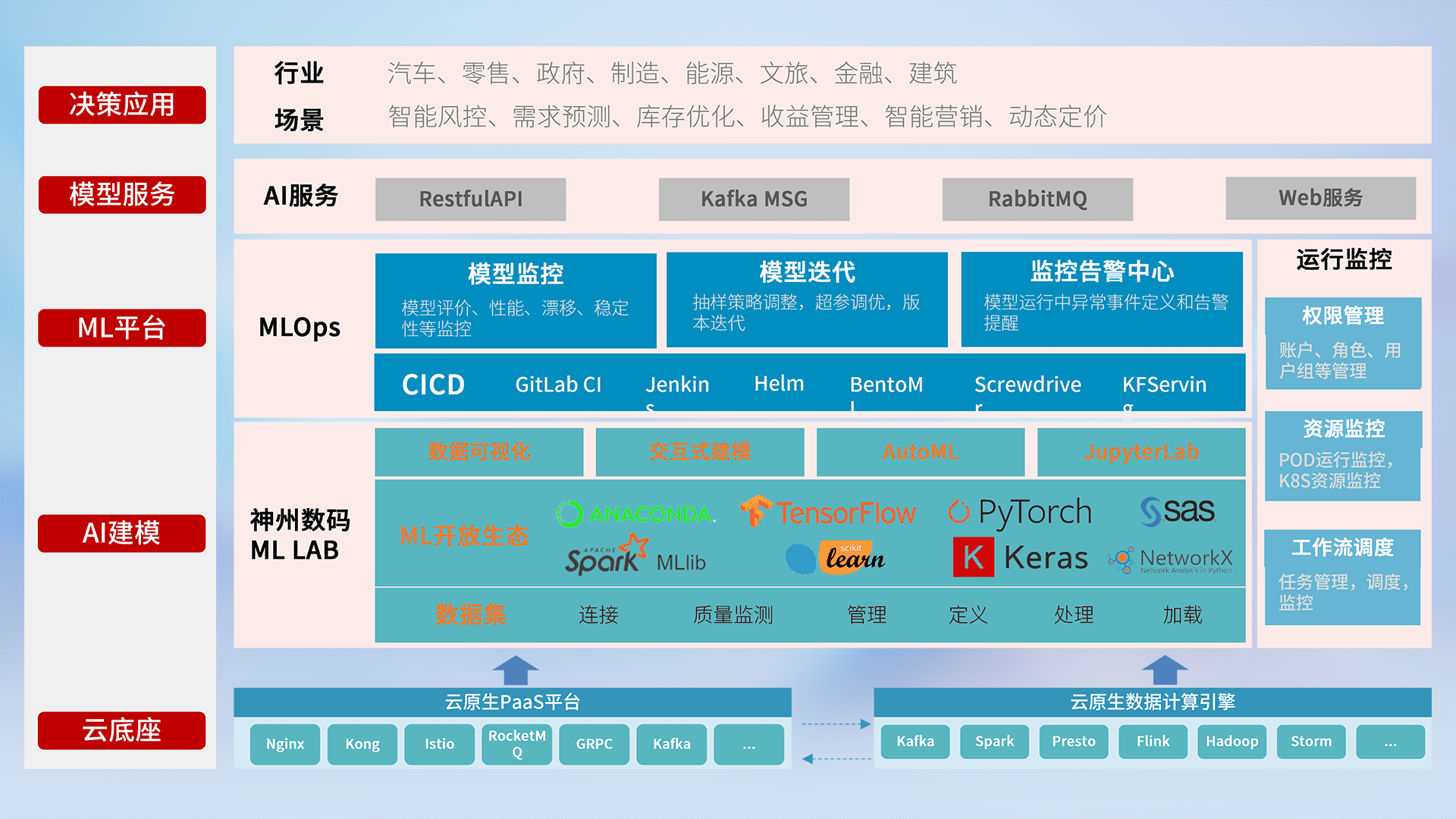数据+模型双引擎驱动,,,,面向智能服务场景,,,快速灵活利用AI技术,,,支持业务决策,,助力企业智能化转型破局。。